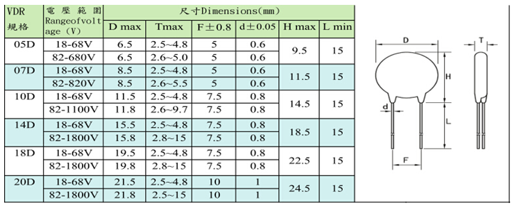 05D系列压敏电阻是插件压敏电阻中体积最小的一款