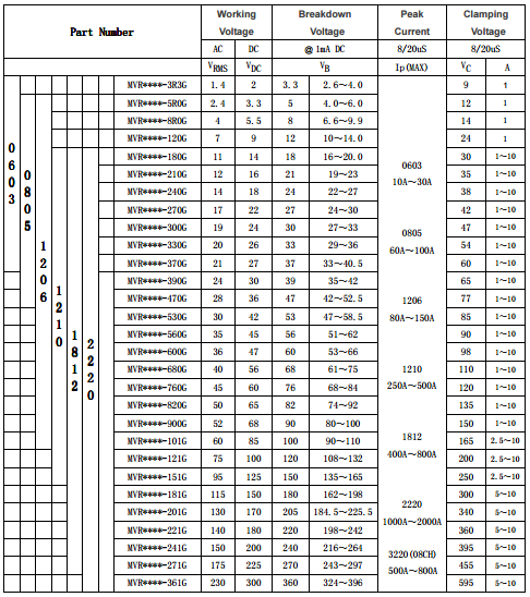 ● Working Voltage from 2V to 470V dc