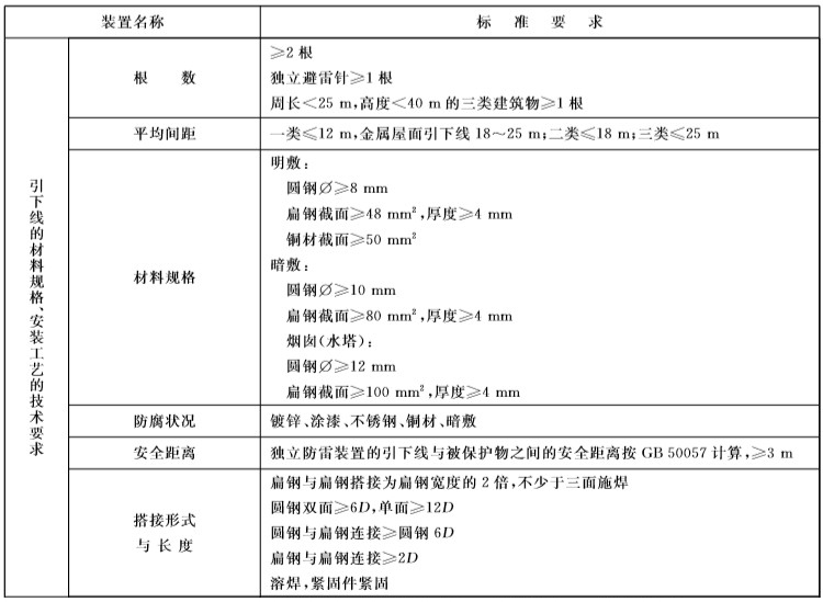 的重要组成部分。为了保证雷电流的泄放效果,防雷工程中用到的引下线要经得起强大的机械力,并具有较高的耐热性和耐腐蚀性,因此引下线的选材和安装工艺就显得尤为重要.