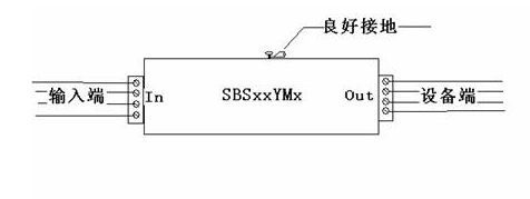将防雷器(SPD)串接于线路和需保护的设备端口之间。将SPD上的接地端口,使用多股铜导线就近接入地网,且应保证接地电阻不大于4欧姆。