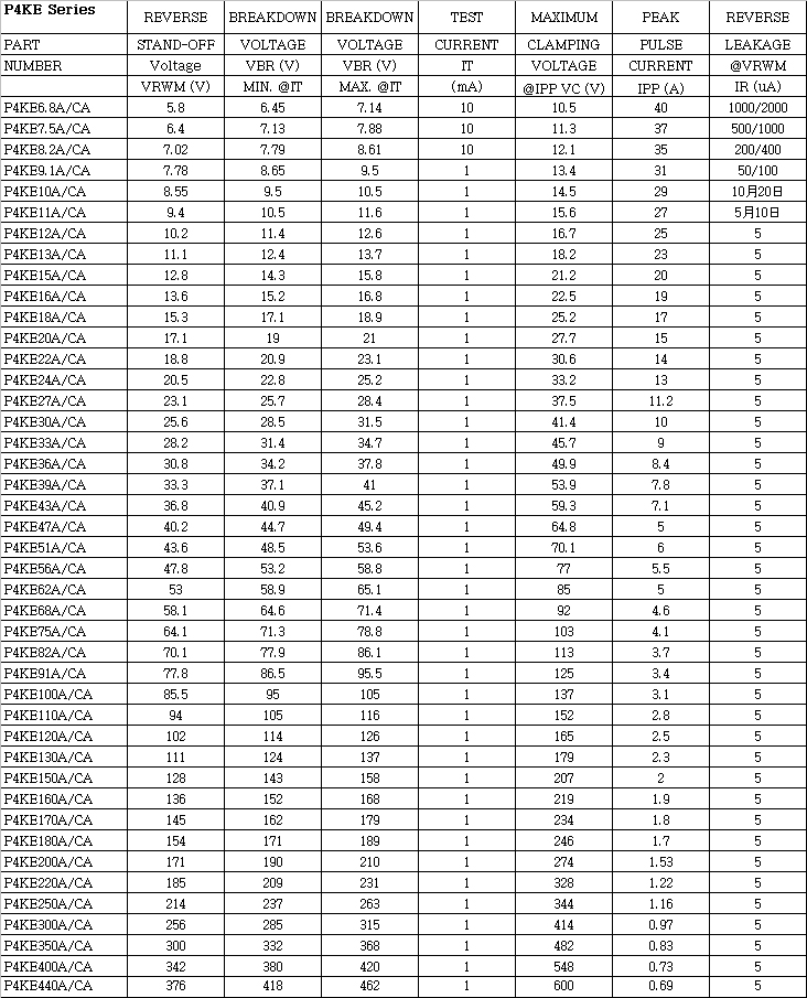 最大反向电压:6.8-440V