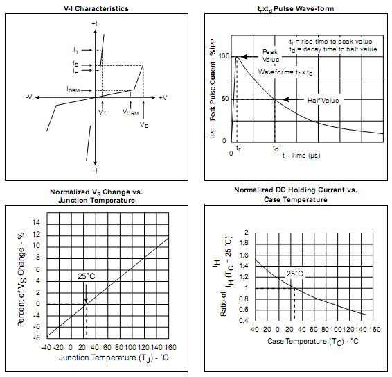| Series | IPP 2x10µs Amps | IPP 8x20µs Amps | IPP 10x160µs Amps | IPP 10x560µs Amps | IPP 10x1000µs Amps | ITSM60Hz Amps | dI/dt Amps/µs |