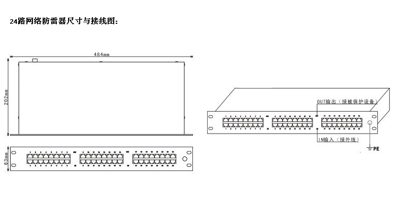 集成多级电涌保护,可用于雷击区域LPZ1- LPZ2分区界面,带有安装附件电缆,可方便地串联接入线路当中,安装时注意线缆进出方向,有“IN”和“OUT”标志。“IN”始终为非保护侧,并指示过电压可能产生的方向、保护侧“OUT”指向被保护区域或设备,通过接地导线进行等电位连接,安装时应尽量靠近被保护设备,并用最短接地路径。接地路径应尽可能短,长度不要超过1.5米。SBSRJ45M4 /8/16/24可方便安装于19英寸标准机柜,只占用1U空间。安装时注意进出电涌保护器的线缆应分开走线,以免出现电涌的二次耦合。在安装时还需要确认通信设备使用的通信引脚与电涌保护器的保护脚是否匹配,否则要在接口处更改接线即跳线。