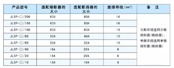 ▲某品牌防雷器前熔断器和断路器选型表