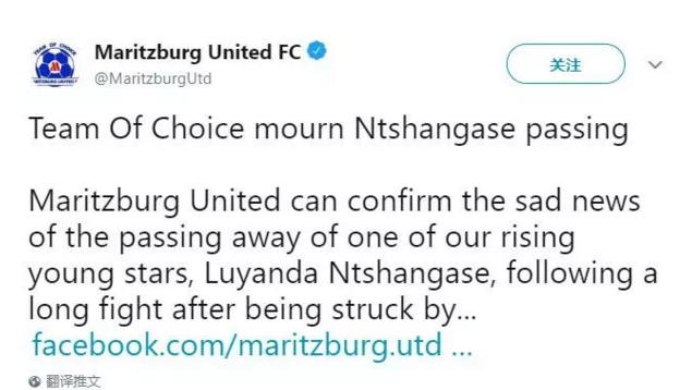 LuyandaNtshangase今年21岁,俱乐部官方声明表示,他本是球队中冉冉升起的希望之星,但如今不幸去世,俱乐部上下深表哀痛。
