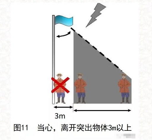 3)在农村,远离突出物体 (见图 11),如雕塑群、路灯、旗杆、铁塔、金属栅栏以及孤立的树木。